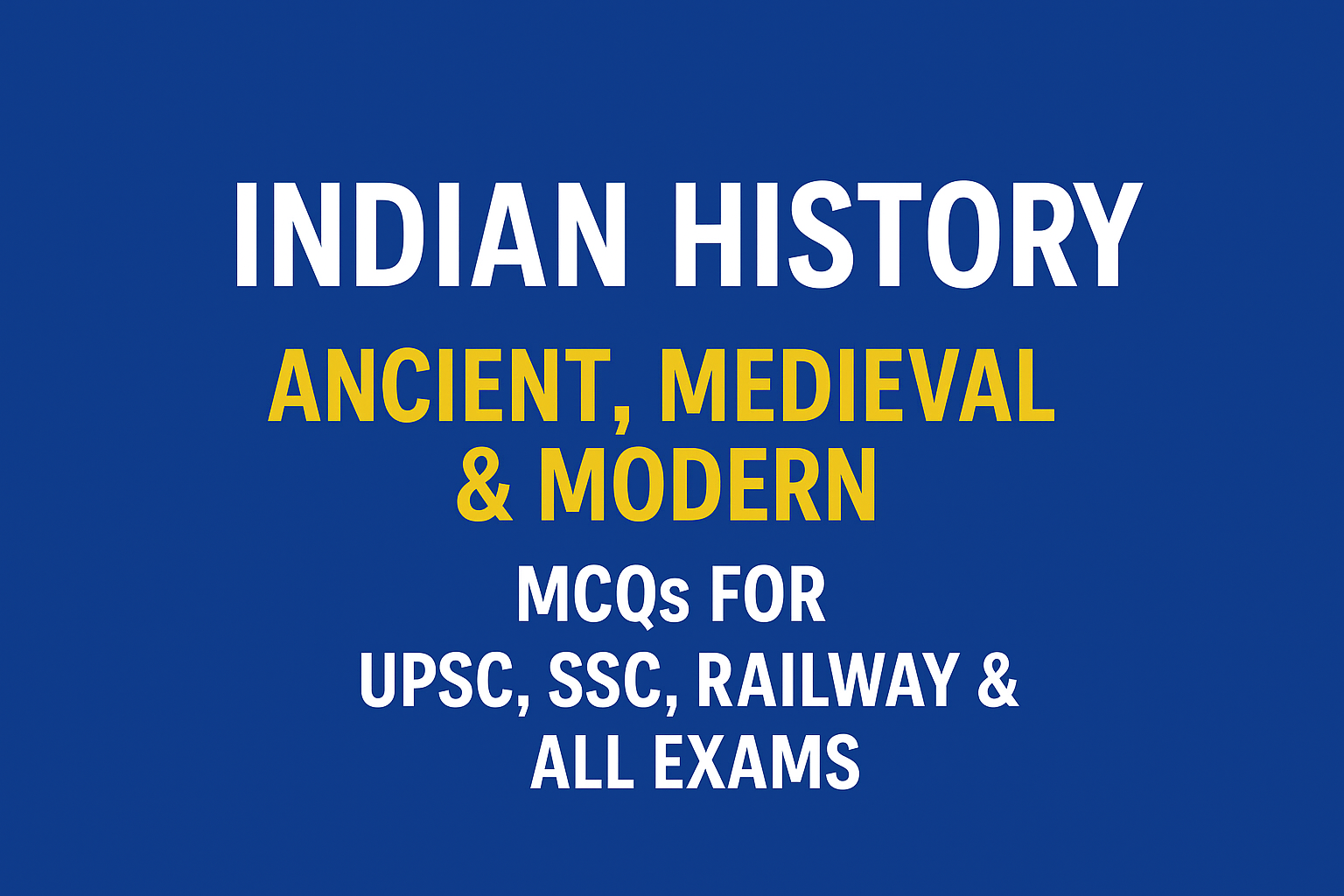 Indian History Ancient, Medieval & Modern MCQs for UPSC, SSC, Railway & All Exams